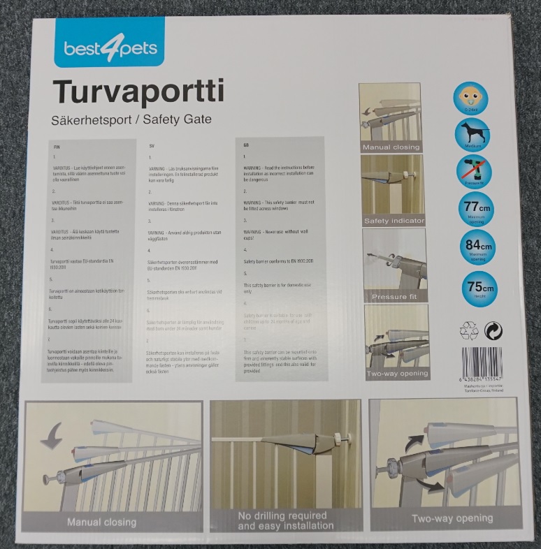 Turvaportti rikkoutui standardin EN 1930:2011 mukaisessa veto-työntötestissä. Mikäli turvaportti on asennettu esimerkiksi portaiden yläpäähän, voi sen hajoaminen johtaa lapsen putoamiseen portaikkoon sekä vakavaan loukkaantumiseen. Lisäksi turvaportissa oli aukkoja, jotka voivat aiheuttaa lapselle kiinnijuuttumisvaaraa.