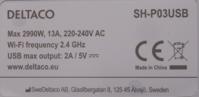 Max. 2990W, 13A, 220-240VAC, Class I. Wi-Fi Frequency 2.4 GHz. USB max output 2A / 5VDC |