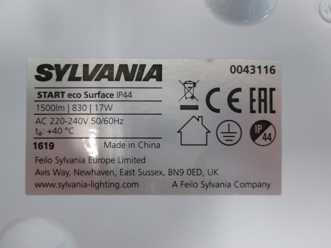 17W, 220-240V, 50/60Hz, lk I, IP44 |