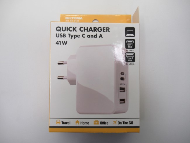 Input: 100-230V~, 50/60Hz; Class II. Output: USB Type C – 5 V / 3A, 9V / 3A, 14,5V / 2A; USB A 5V / 2,4A |