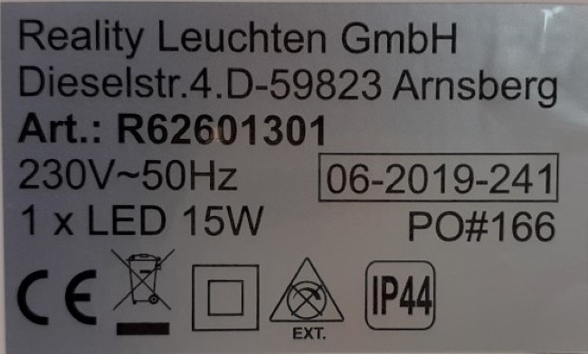 Tuote ei täytä sähköturvallisuuslain (1135/2016) eikä tuotetta koskevan eurooppalaisen harmonisoidun standardin EN 60598 vaatimuksia.Tuote ei täytä kotelointiluokan IPX4 (roiskevesikoe) vaatimuksia. Lisäksi valaisimen liitäntälaitteen muuntajan ensiö- ja toisiopiirien välinen eristys ei täytä vahvistetulle eristykselle tuotestandardissa annettuja vaatimuksia.
