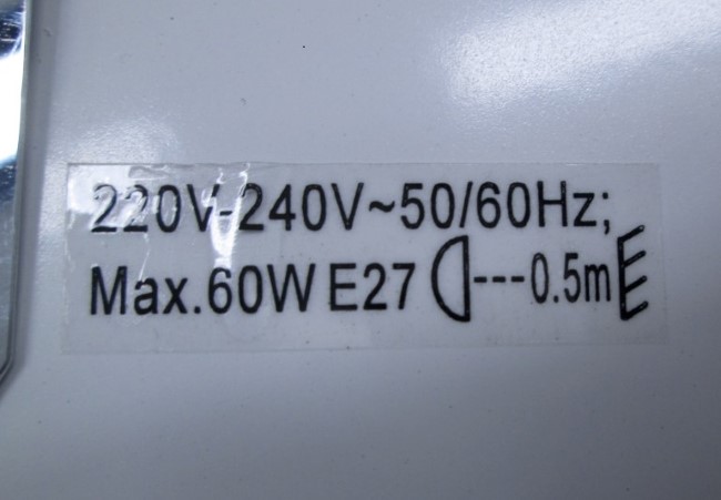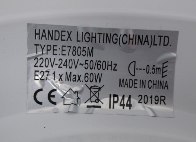 max. 60W-E27, 220-240V, 50/60Hz, class I, IP44 |