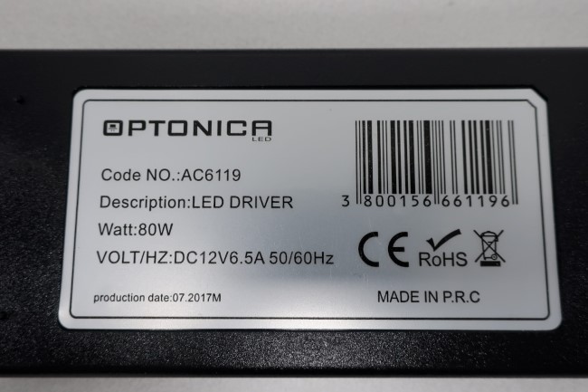110-240V, 50/60Hz, 12VDC / 6,5A / 80W, class II, IP20 |