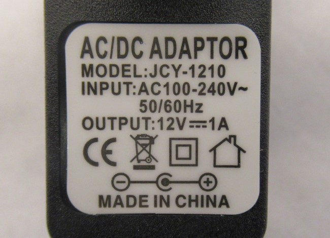 Input: 100-240V~, 50\60 Hz. Suojausluokka II / Class II. Output:, Output: 12 VDC, 1 A |