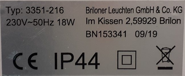 Valaisin ei täytä kotelointiluokan IPX4 (roiskevesikoe) vaatimuksia. Valaisin ei täytä sähköturvallisuuslain (1135/2016) eikä tuotetta koskevan eurooppalaisen harmonisoidun standardin EN 60598 vaatimuksia.