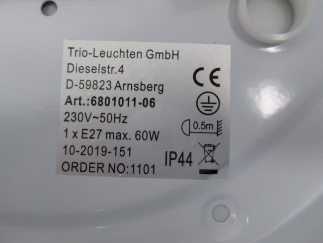 Max 60W-E27, 230V, 50Hz, IP44 |