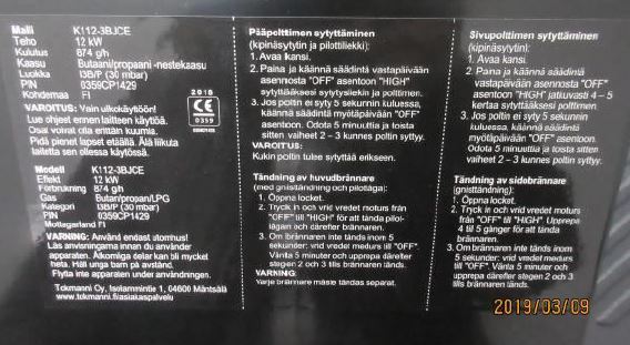 Tuote ei täytä tyyppitarkastustodistuksen ja vaatimustenmukaisuusvakuutuksen osalta vaatimuksia, joista säädetään kaasulaiteasetuksessa (EU) 2016/426. Päätöksen mukaan yritys ei saa jatkaa tuotteiden myyntiä ennen kuin tuote on saatettu lainsäädännön vaatimusten mukaiseksi.