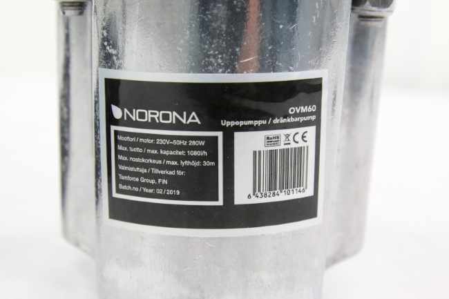 230VAC, 50Hz, 280W, 1080l/h, max. nostokorkeus 30m |