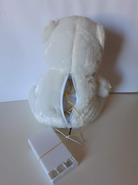 Nallen sisällä olevan paristokotelon, jossa on kiinni erittäin pitkät johdot, saa vetoketjun avaten käsiin. Pitkät johdot voivat aiheuttaa kuristumisvaaraa. Paristokotelon saa auki liian helposti ja lapsi voi päästä paristoihin käsiksi, joka voi aiheuttaa vaaraa.