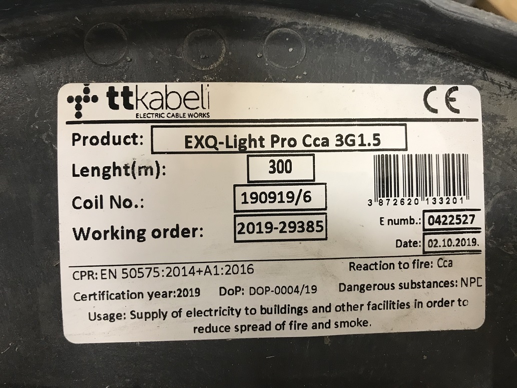 Tukes on selvittänyt tuotteen vaatimustenmukaisuutta ja testauttanut sen akkreditoidussa testauslaboratoriossa. Tuote kuuluu harmonisoidun tuotestandardin EN 50575:2014+A1:2016 soveltamisalaan. Tuotteen palotekninen käyttäytyminen testattiin standardien EN 60332-1-2:2004+A1:2016, EN 50399:2011 ja EN 60754-2:2014 mukaisesti.