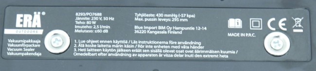 230VAC, 50Hz, 80W, 2,5l/min, <60dB, Class II |