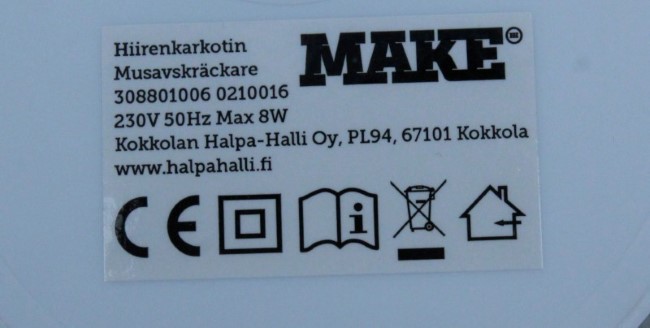 Tuotteessa ei ole riittävää omaa suojausta vikaantumista vastaan.Tuote ei täytä sähköturvallisuuslain (1135/2016) eikä tuotetta koskevan eurooppalaisen harmonisoidun standardin EN 60335 vaatimuksia.
