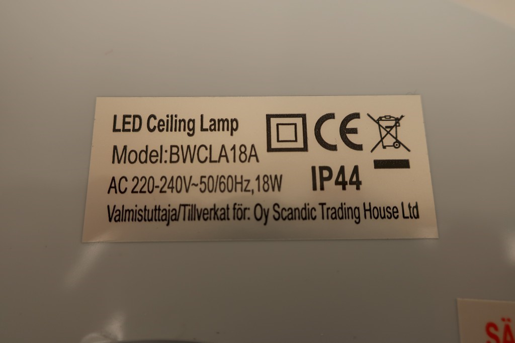 Valaisin ei täytä sille ilmoitettua kotelointiluokkaa veden haitallista tunkeutumista vastaan (IPX4 - roiskevedenvedenpitävyys). Tuote ei täytä sähköturvallisuuslain (1135/2016) eikä tuotetta koskevan eurooppalaisen harmonisoidun standardin EN 60598 vaatimuksia.